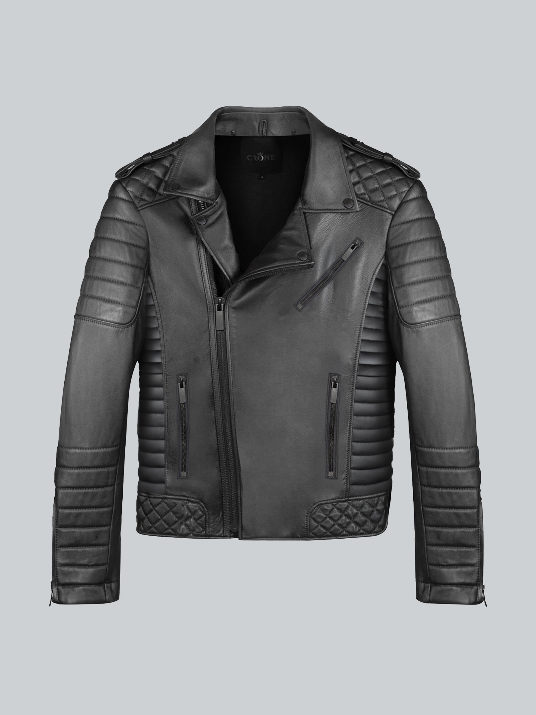 The edgy Naik biker jacket impresses with thoughtful design – paddings on the arms and shoulders provide you with extra protection, the double zipper placket ensures the perfect fit, and the leather straps on the zippers can be quickly opened even with gloves on.