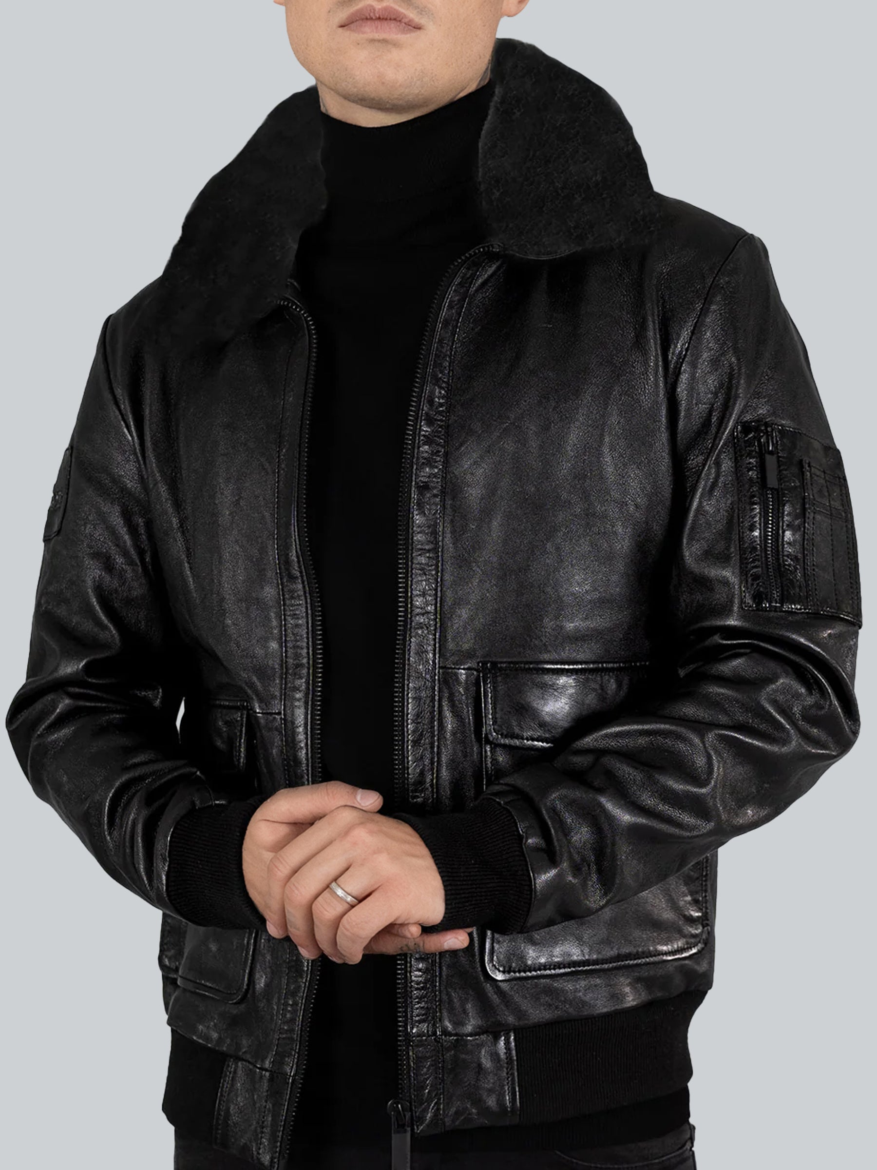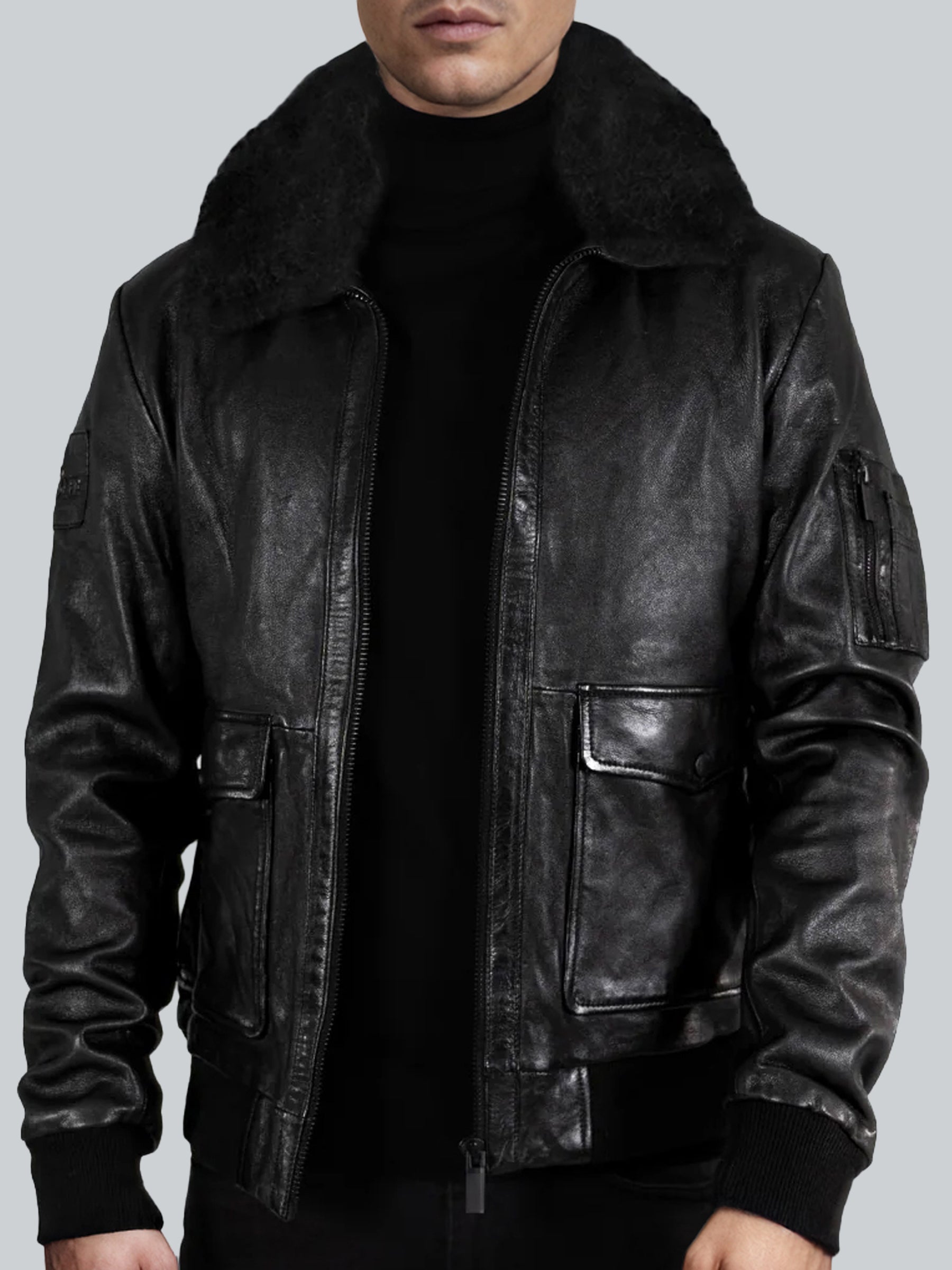 Die Pilotenjacke Pete hat einen sportlichen Fit mit aufgesetzten Taschen und versteckten seitlichen Eingriffstaschen. Der flauschig weiche Lammfellkragen gibt im Winter zusätzliche Wärme und kann mit wenigen Handgriffen abgeknöpft werden.