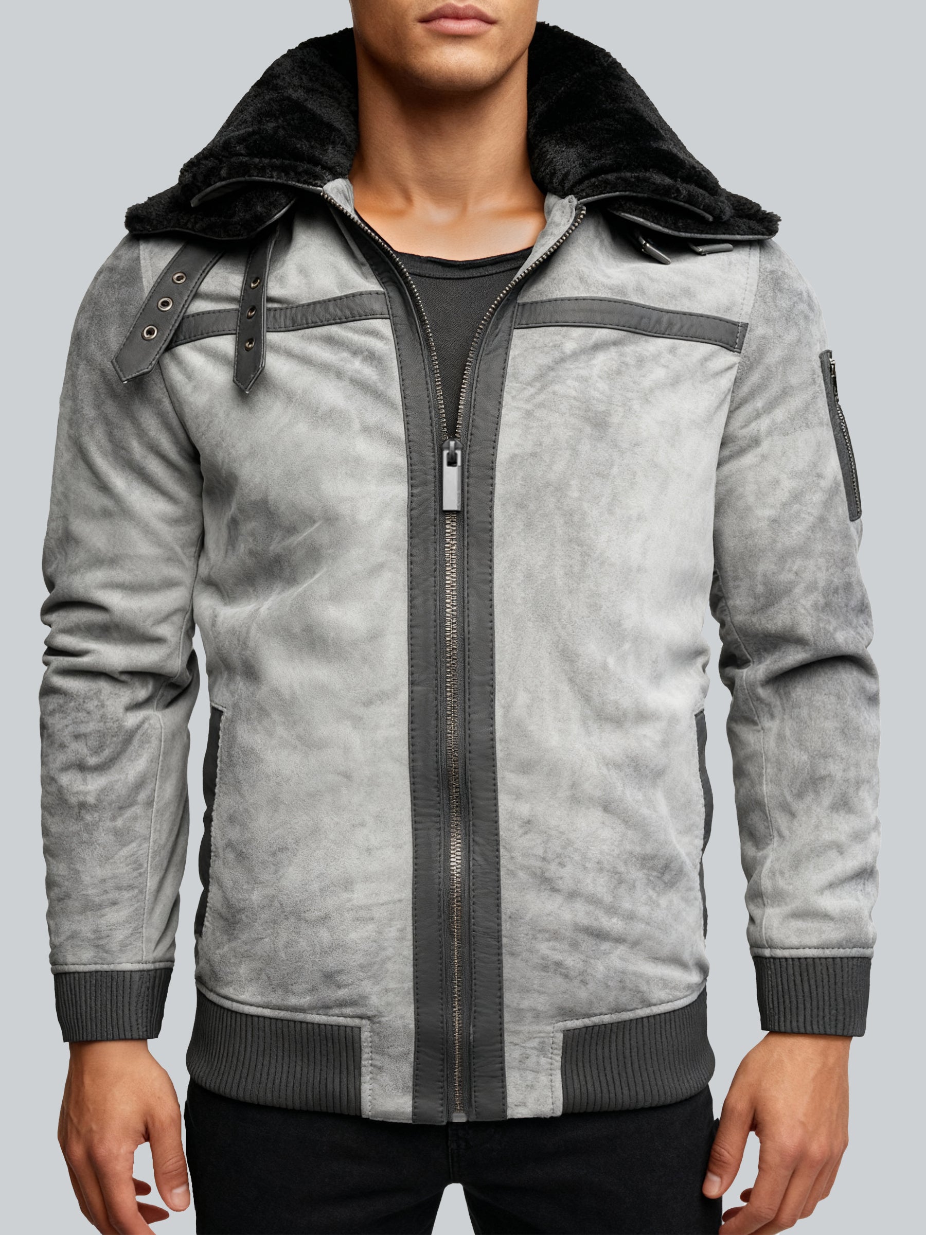 La Talvi está fabricada con 100 % cuero genuino de vaca con acabado en cuero nubuck y cuenta con un cuello doble de piel de cordero premium. Con elementos elásticos de cuero genuino en las mangas y los puños de la chaqueta, ofrece comodidad y un aspecto distintivo.