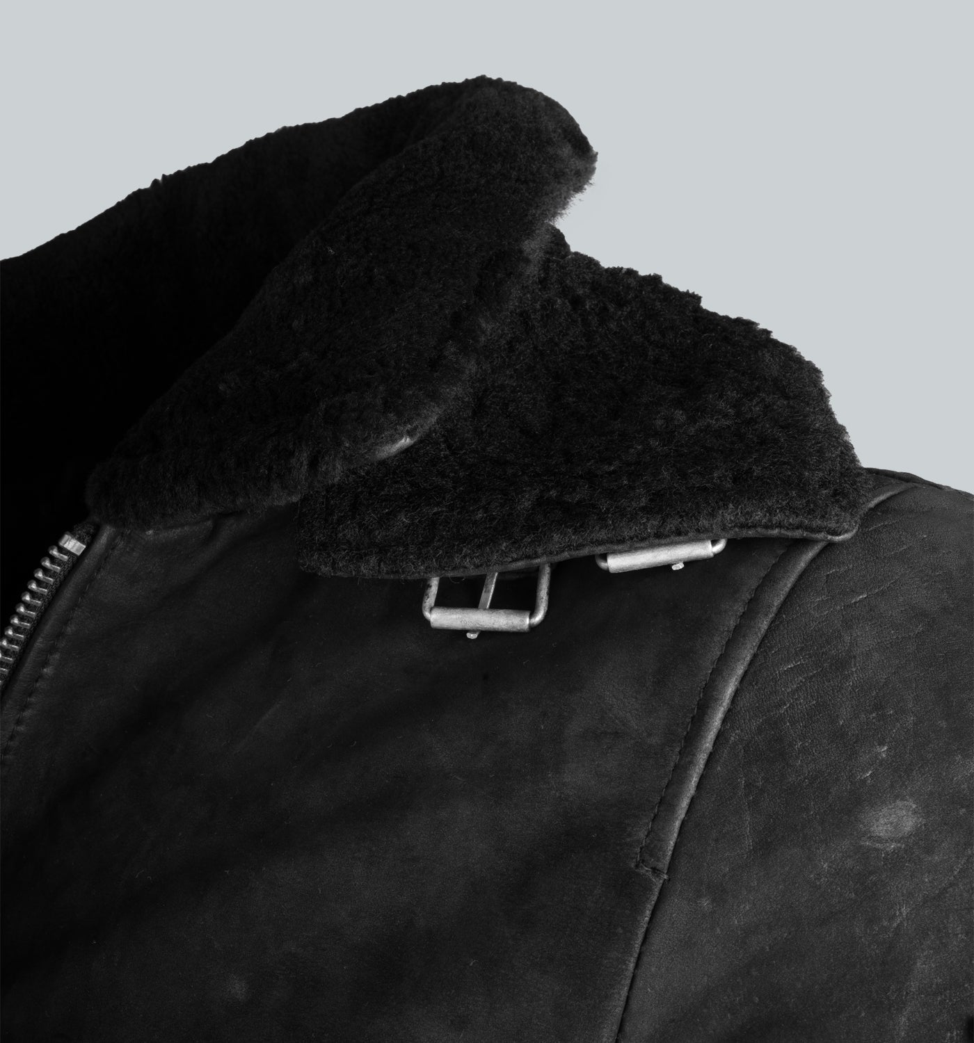 100% Echtleder, 100% Echt-Shearling Doppelkragen
