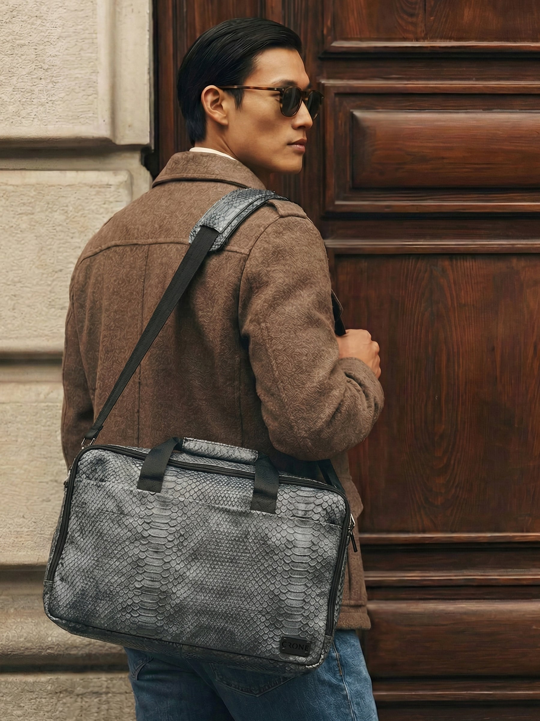 BERLIN steht für einen modernen, urbanen Minimalismus. Die geradlinige Silhouette verzichtet auf überflüssige Details und setzt stattdessen auf hochwertige Materialien und markante Akzente wie mattschwarze Beschläge. Es ist ein zeitloses Statement-Piece für Menschen, die Wert auf einen souveränen, stilbewussten und aufgeräumten Auftritt legen – passend zum Business-Anzug genauso wie zum Smart-Casual-Look.