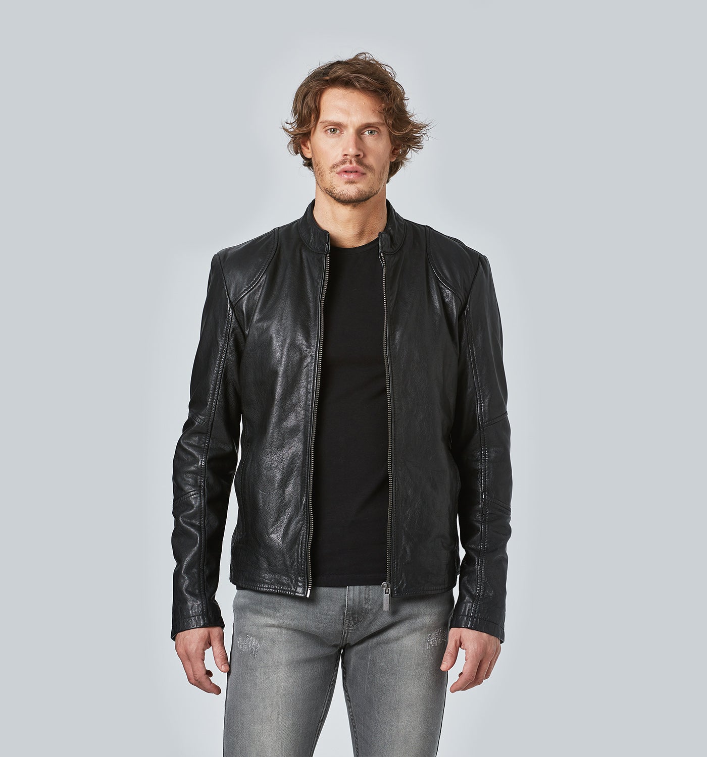 Ivars dezenter Kragen, sowie seine klare und symmetrische Linienführung sorgen für einen cleanen Look. Bei dieser Jacke steht die hochwertige Lederqualität im Fokus.
