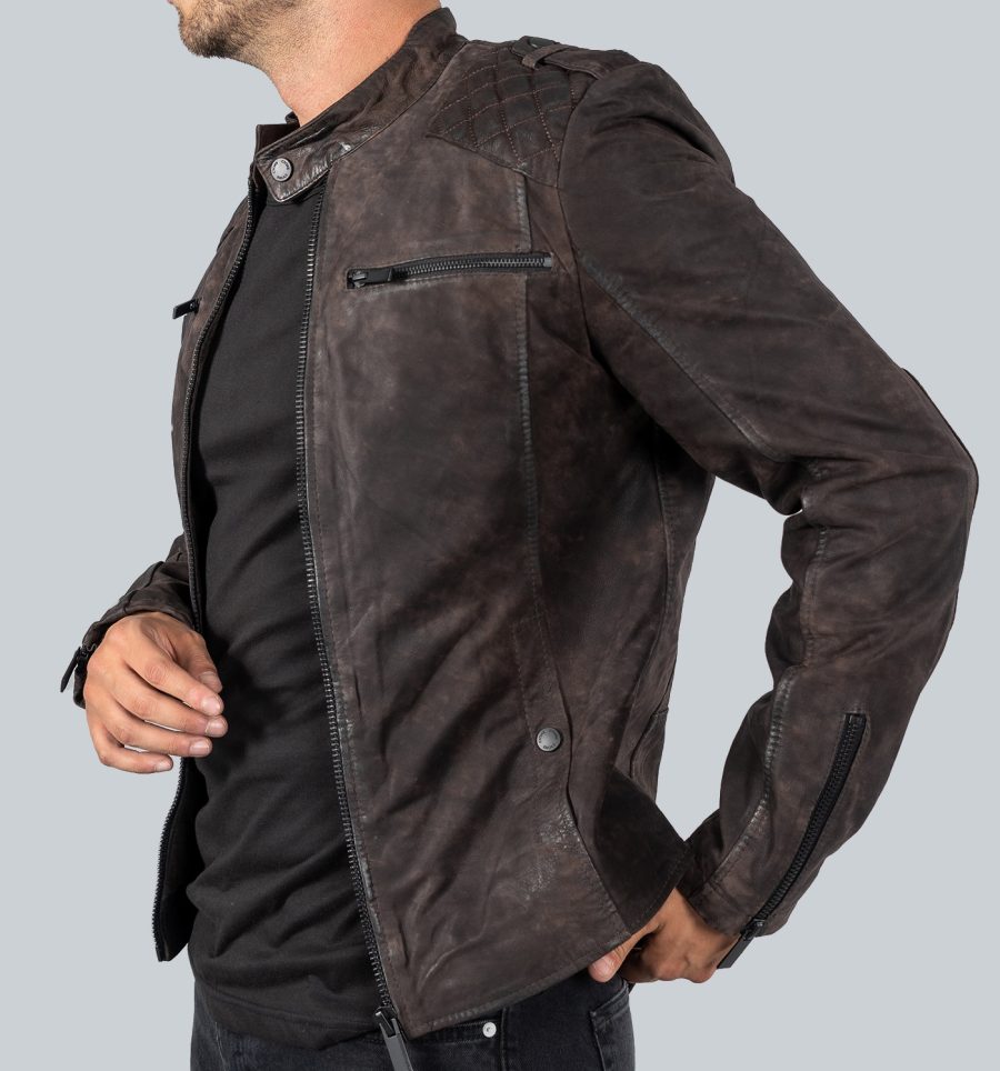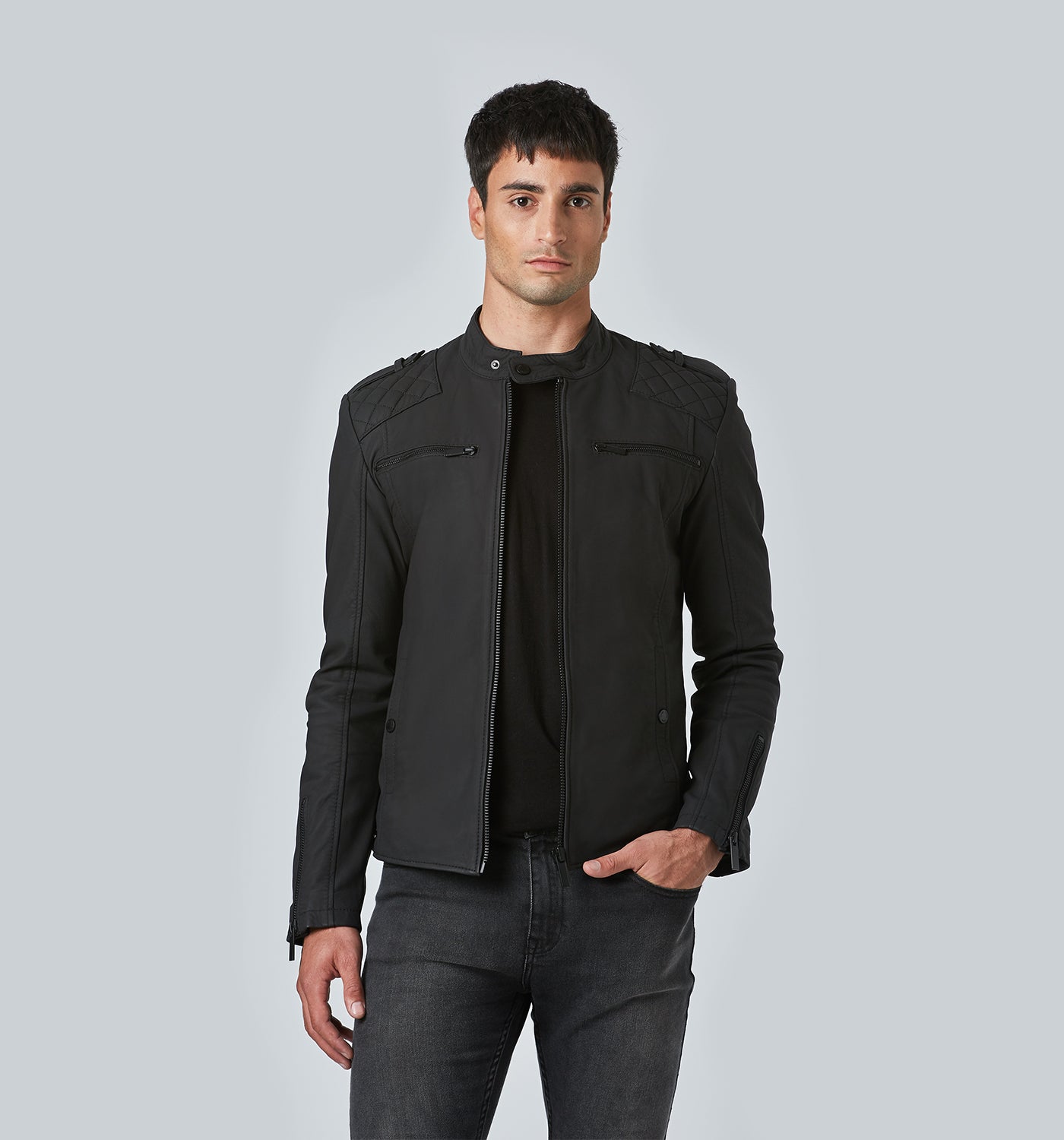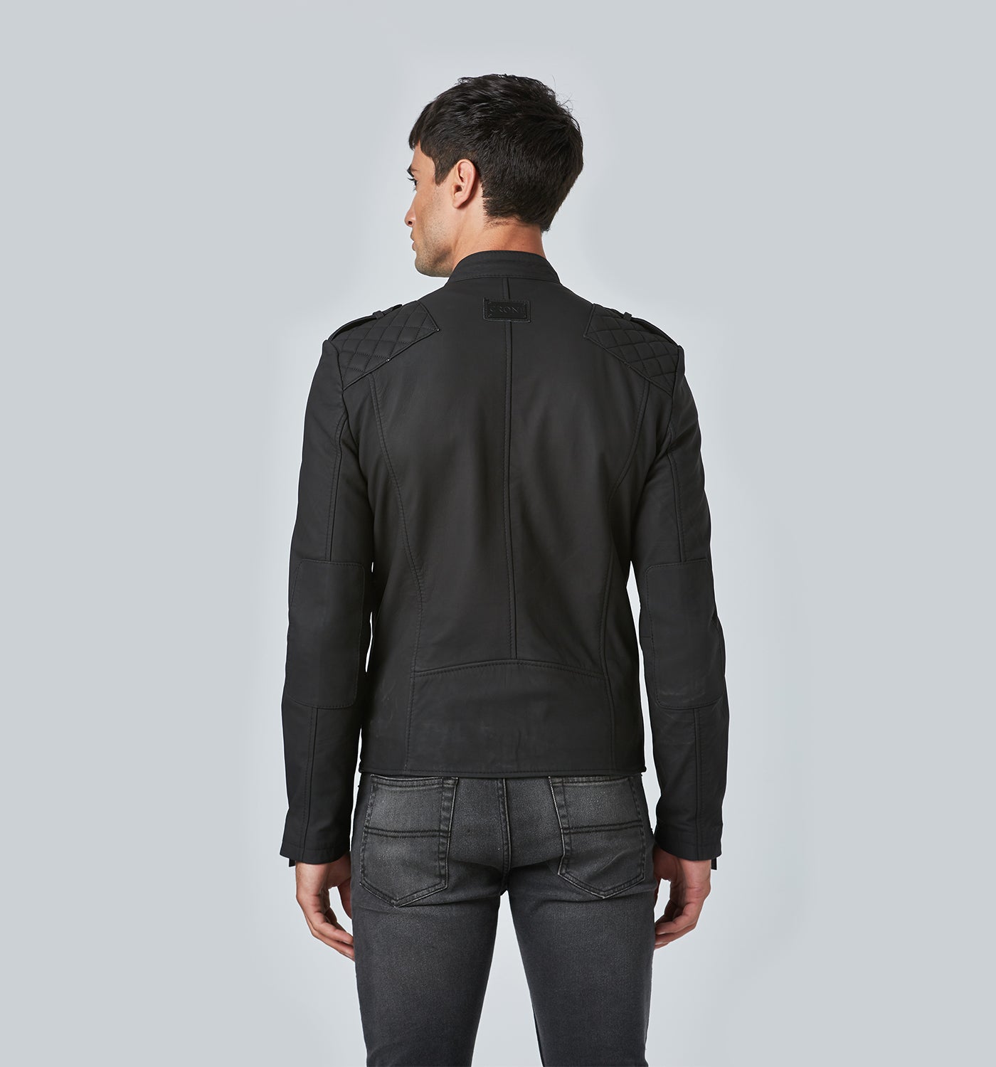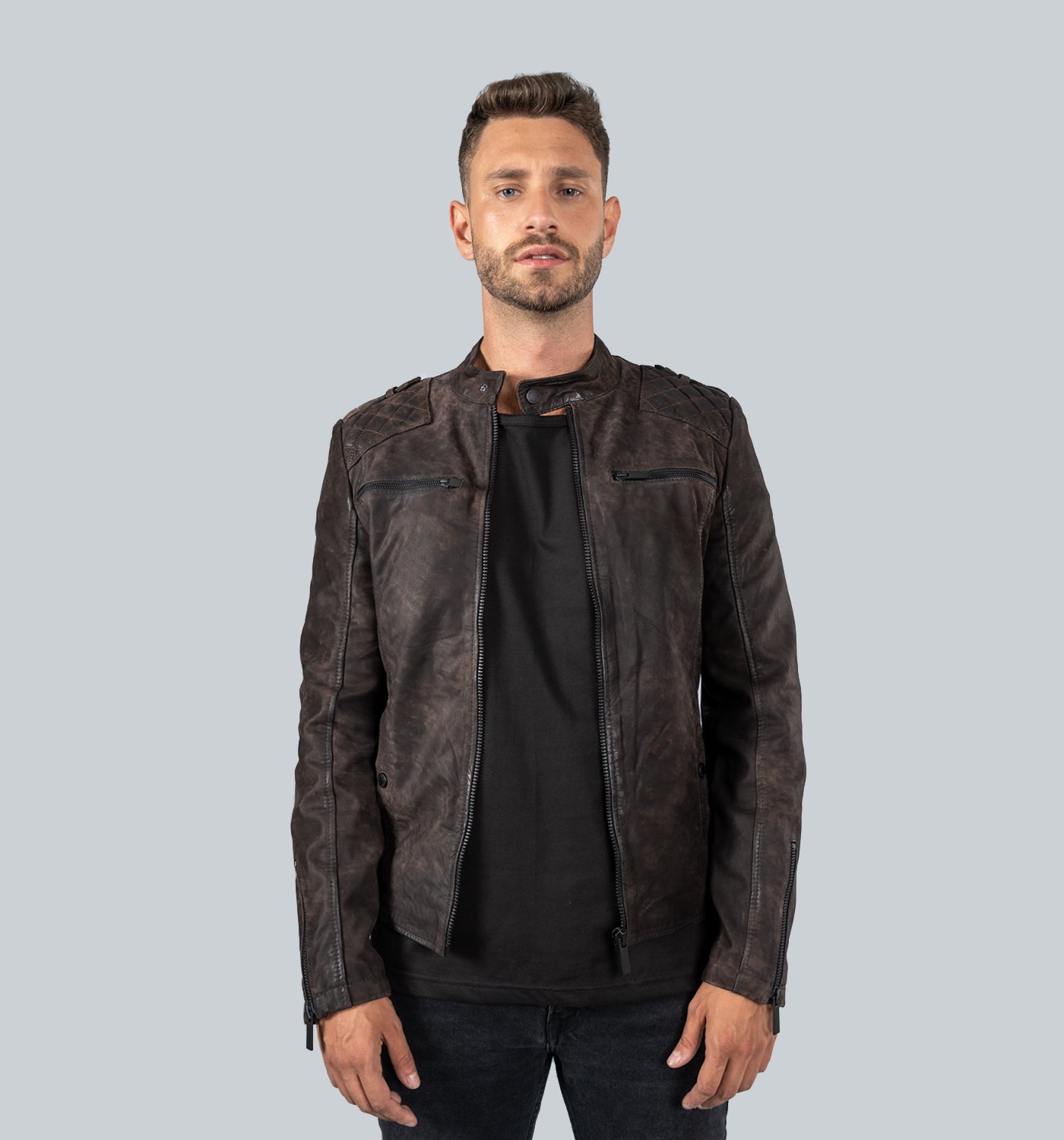 Meo ist der wilde große Bruder von Epic – klassische Lederjacke trifft auf rockiges Diamond Stitching und Epauletten an den Schultern.