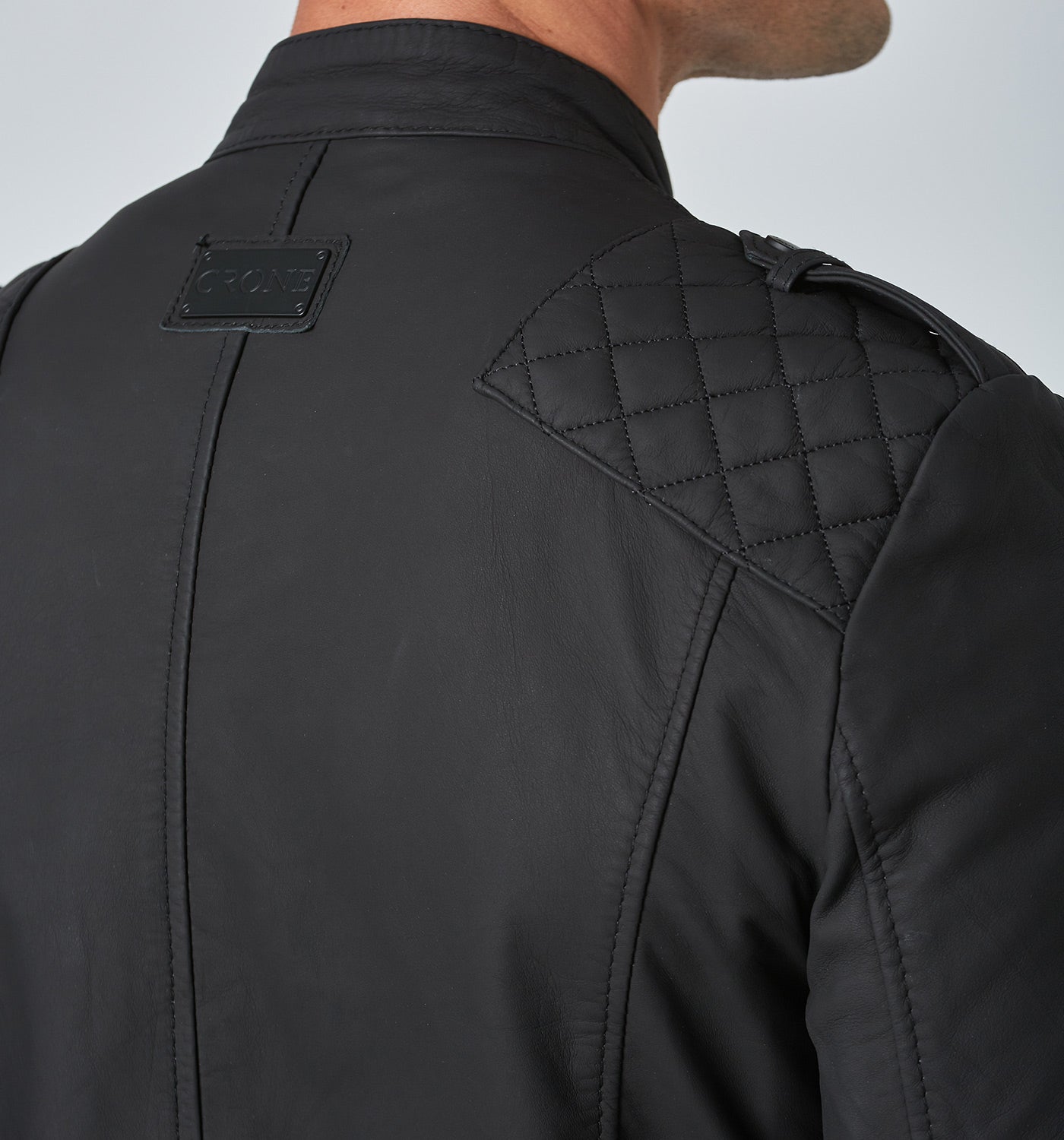 MEO ist der wilde große Bruder von Epic – klassische Lederjacke trifft auf rockiges Diamond Stitching und Epauletten an den Schultern.