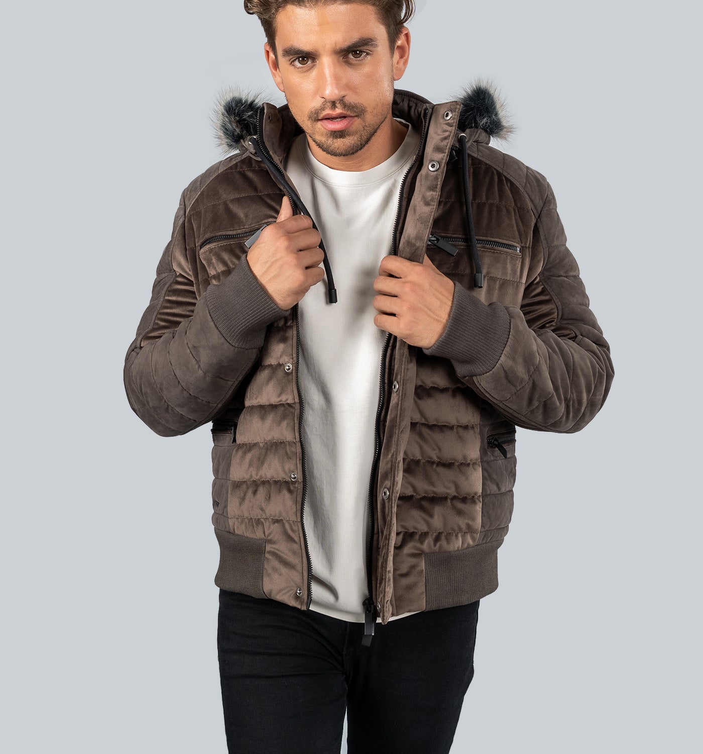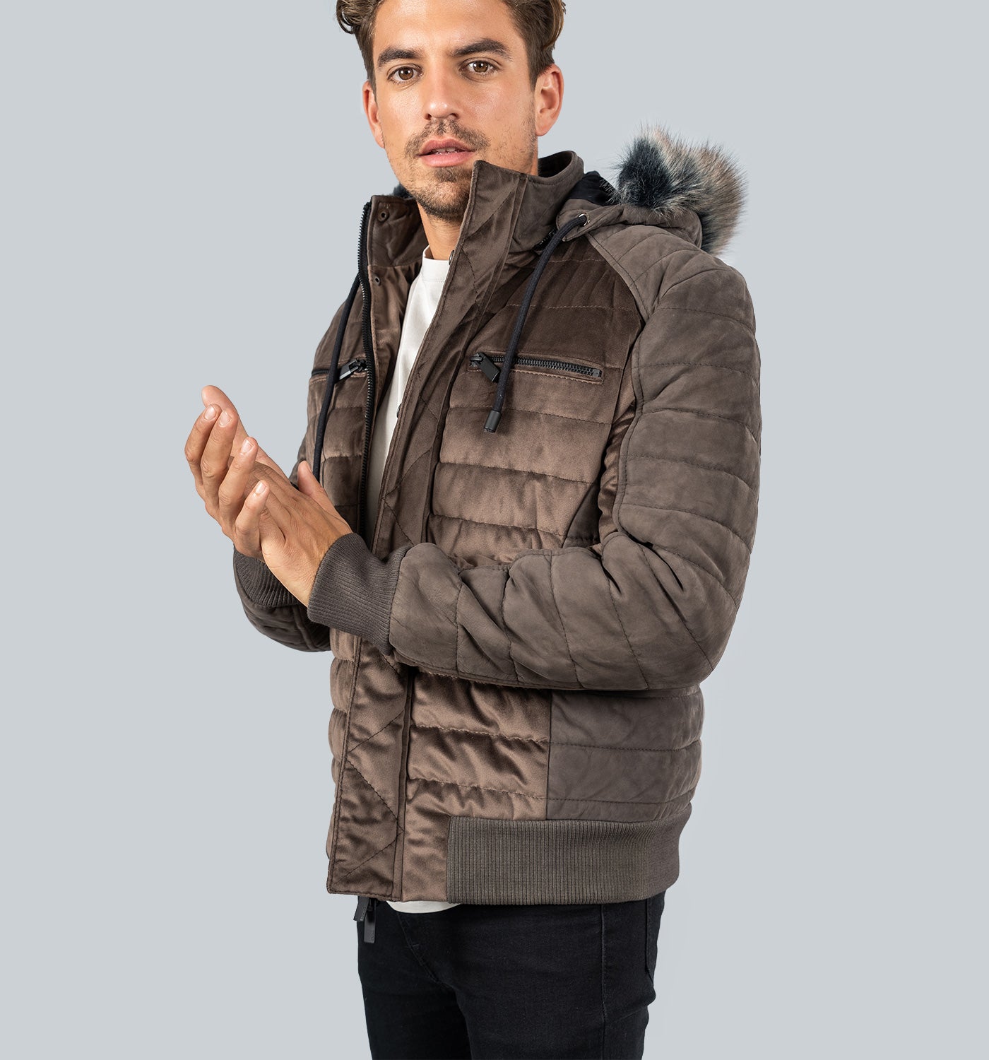 Norwin kombiniert die starken Biker-Elemente einer Lederjacke mit weichem und wärmenden Samtstoff. Durch die isolierende Fütterung, den sportlichen Rippen und dem Fellkragen an der Kapuze gehst du stylish und bestens geschützt durch die kalten Wintertage.