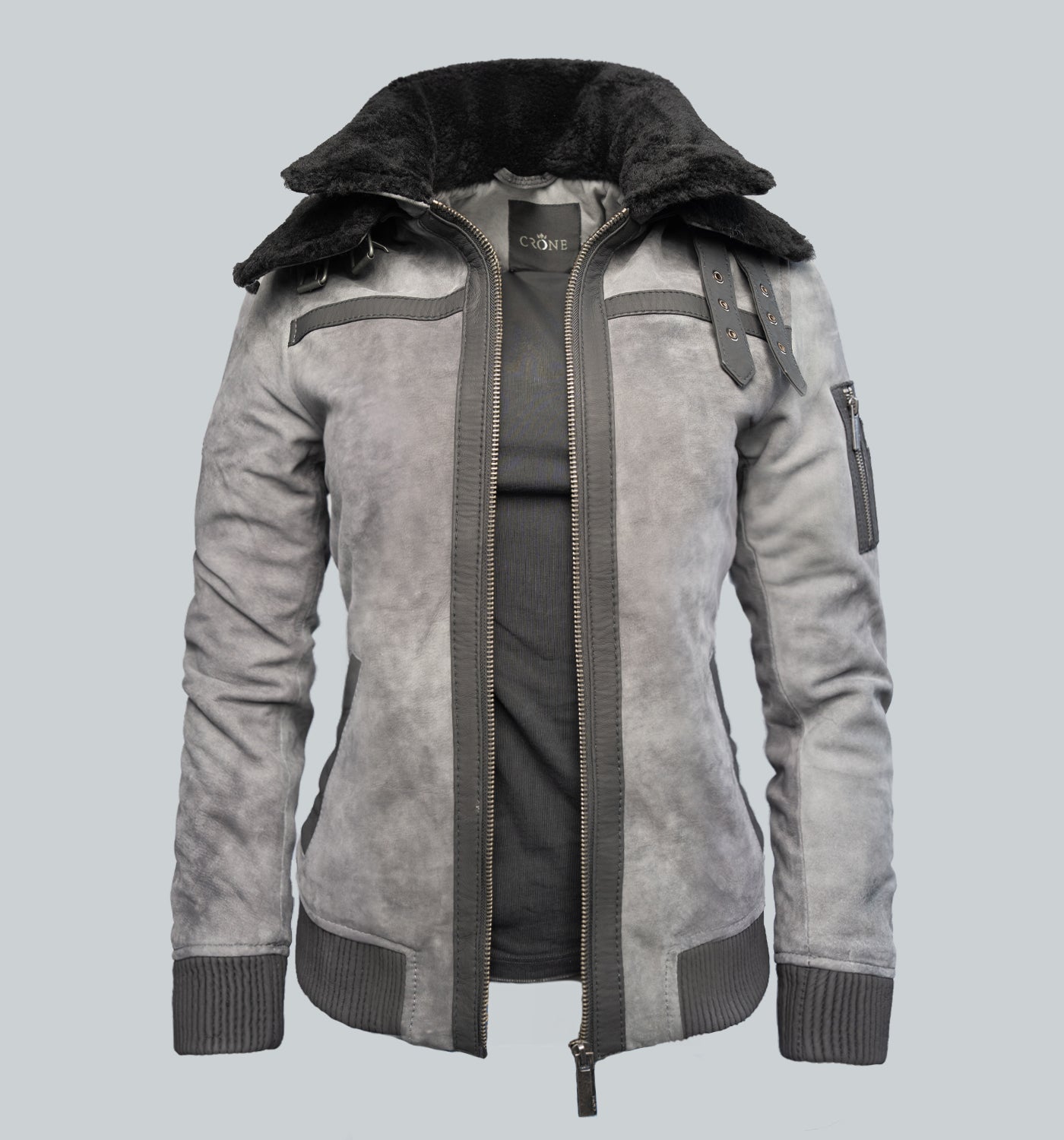 Entdecke die Talvi Crone-Bomberjacke, gefertigt aus 100 % echtem Rindsleder in Nubukleder-Finish mit doppeltem Premium-Schafslammfell-Kragen. Im Bomberjacken-Stil gefertigt mit Echtleder-Stretch-Elementen am Arm- und Jackenabschluss.