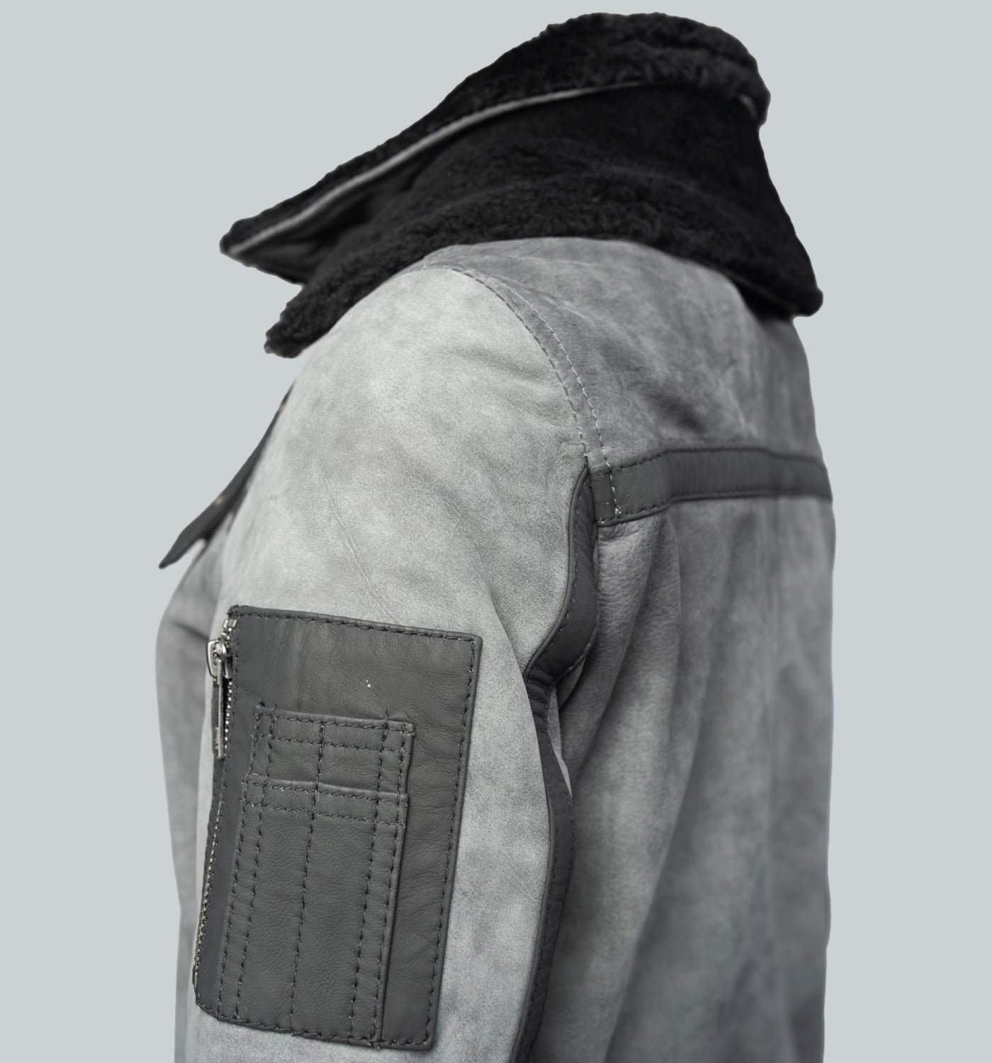 Die Talvi ist aus 100 % echtem Rindsleder im Nubukleder-Finish gefertigt, mit einem doppelten Premium-Schafslammfell-Kragen und Echtleder-Stretch-Elementen am Arm- und Jackenabschluss. Die steingraue Elephant Nubukleder Vintage Waschung bietet einen markanten Look und ist gleichzeitig pflegeleicht bei jeder Witterung. Mit einem doppelten Lammfellkragen, mattschwarzen Reißverschlüssen und Metallapplikationen wird diese Jacke zum individuellen Begleiter.